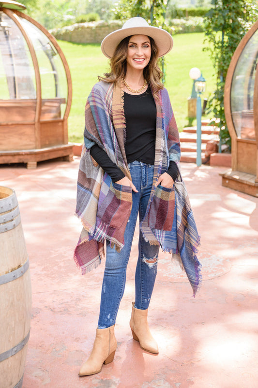 Long Sleeve Knit Top With Pocket In Denim Blue