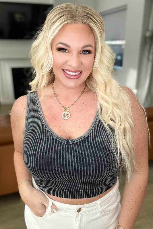 Effortless Reversible Mineral Wash Ribbed Tank in Ash Black