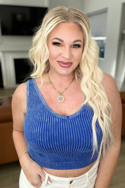 Effortless Reversible Mineral Wash Ribbed Tank in Light Indigo
