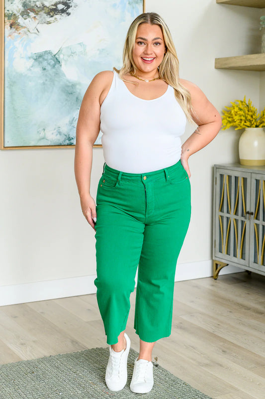 Lisa High Rise Control Top Wide Leg Crop Jeans in Kelly Green