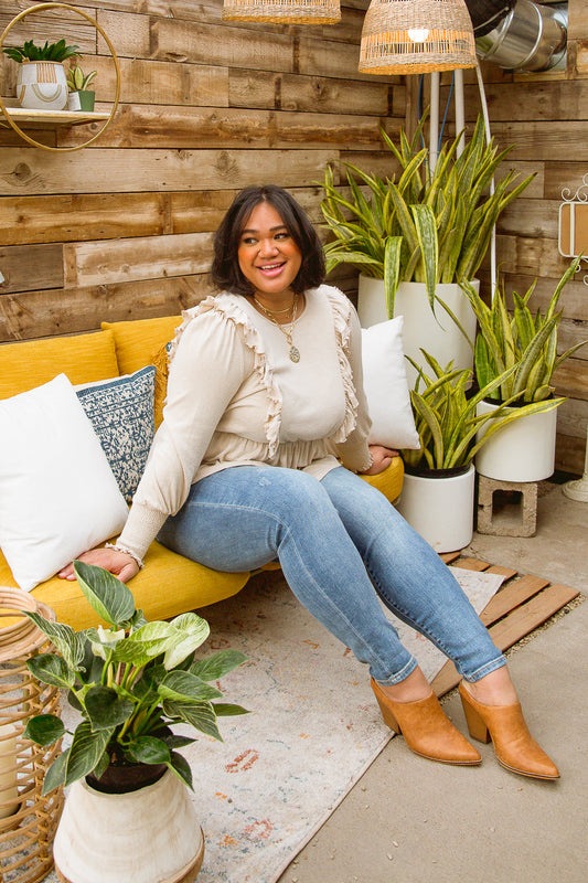 Into The Fringe Top in Beige