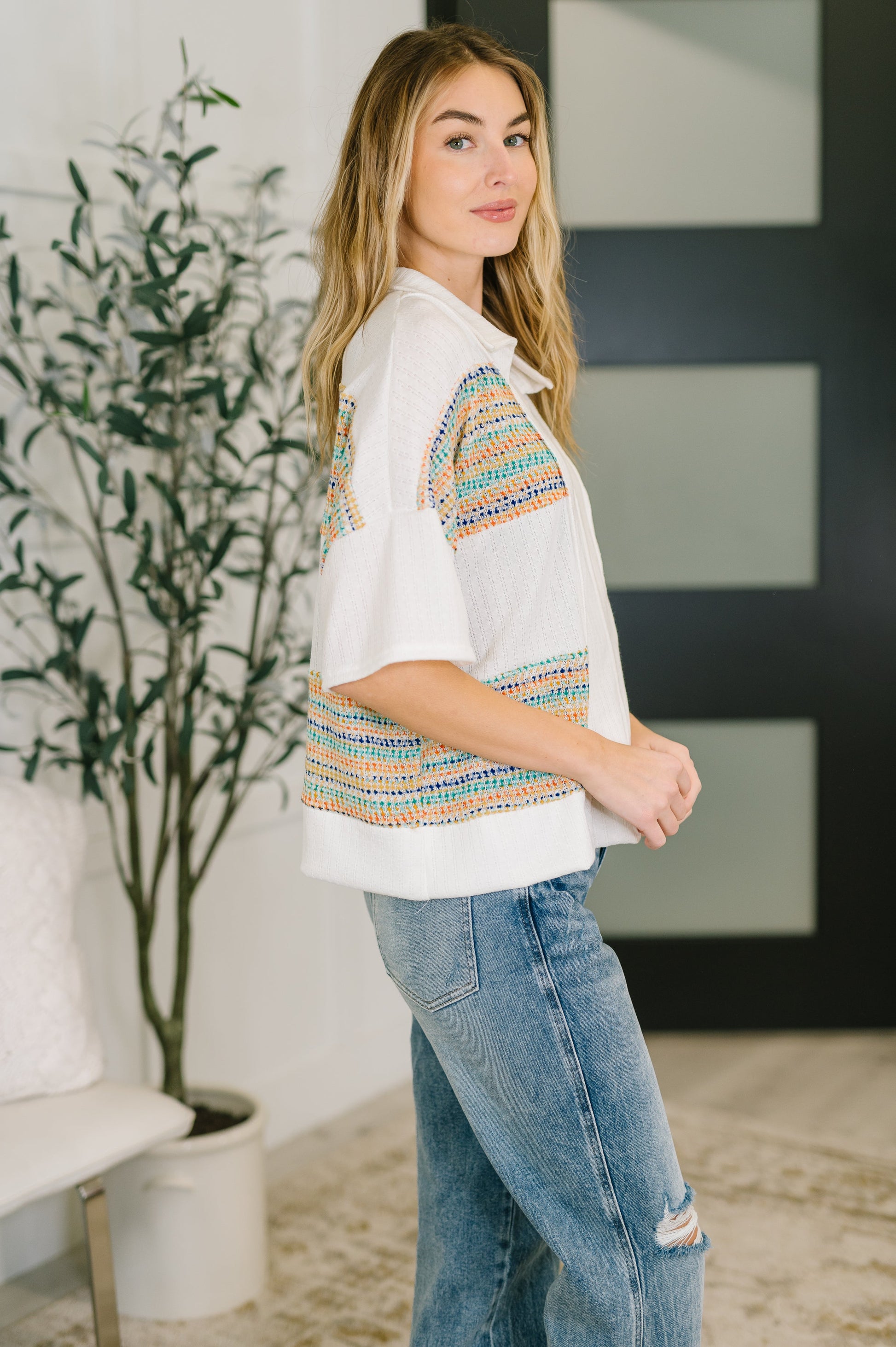 The Good For Me Collared Knit Top is your new go-to for effortless style and comfort. Crafted from textured lightweight knit with plenty of stretch, it moves with you all day long. A flattering collared V-neck creates a polished silhouette, while contrast knit and exposed seam details add visual interest and modern edge. Perfect for layering or wearing solo, this versatile top works as hard as you do.